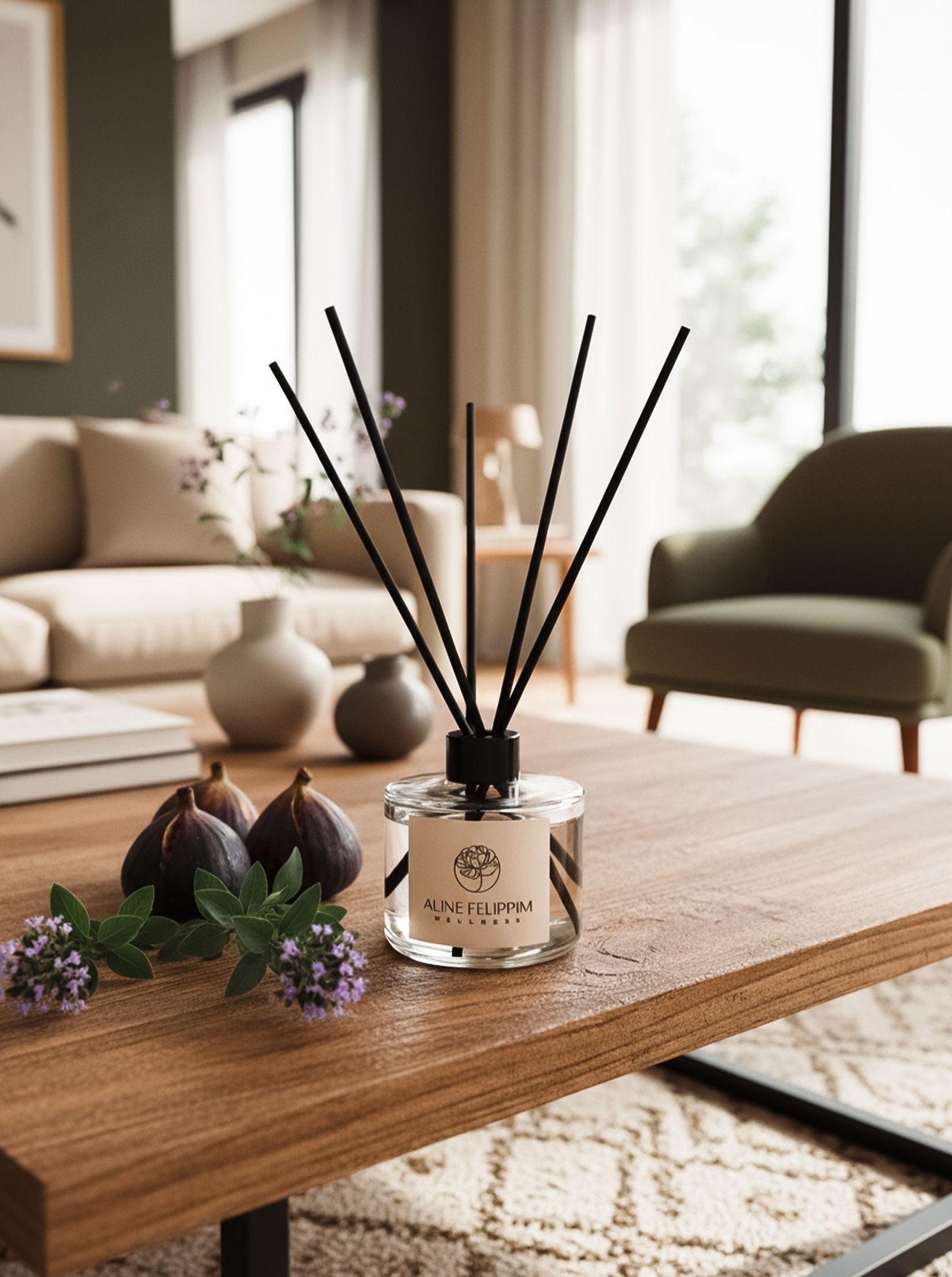 Transforme seu espaço em um refúgio de naturalidade autêntica com a exclusiva Fragrância Figo Selvagem da Aline Felippim Wellness.