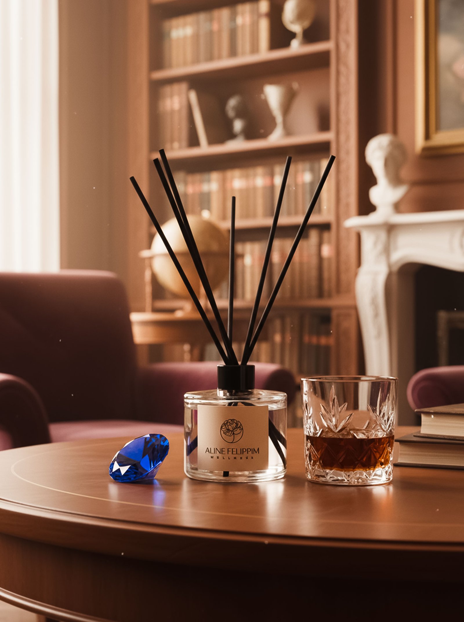Transforme seu espaço em um ambiente de distinção e elegância com a exclusiva Fragrância Safira da Aline Felippim Wellness.
